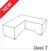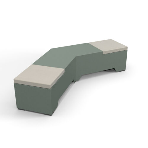 De basis is uitgevoerd in Tough Wrap en aan te vullen met gestoffeerde kussen, gestoffeerde zittingen en afwerking in HPL.