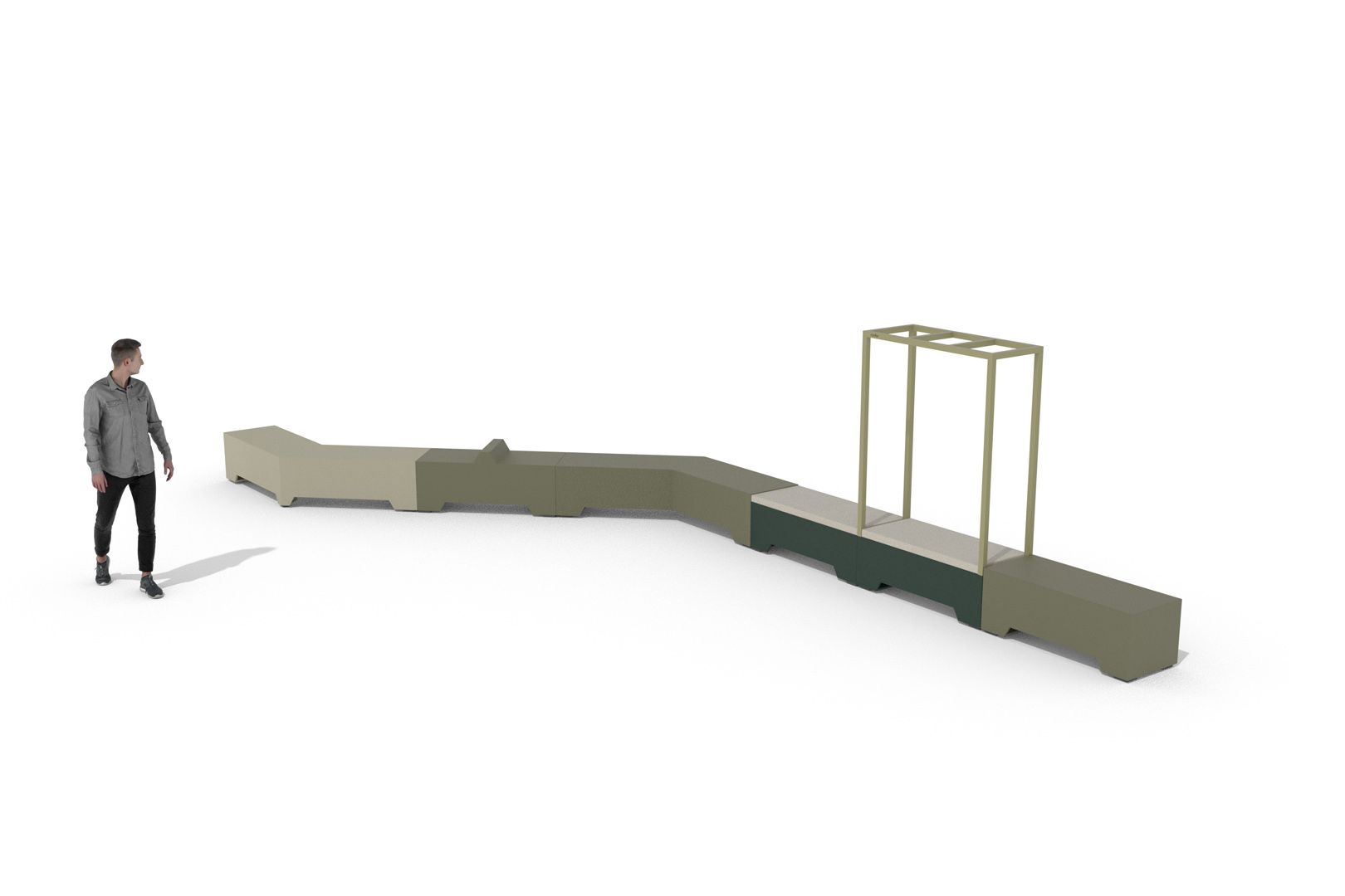 Versie C – Mix Tough Wrap basis met delen 45 cm zithoogte en delen 39 cm zithoogte.